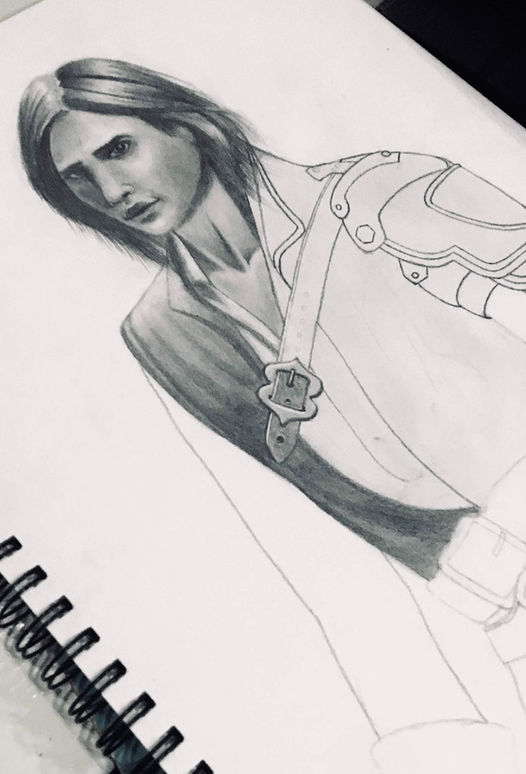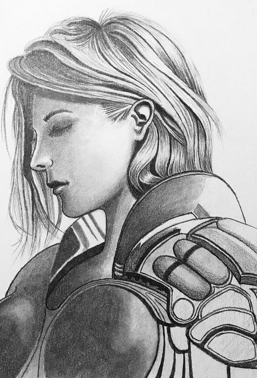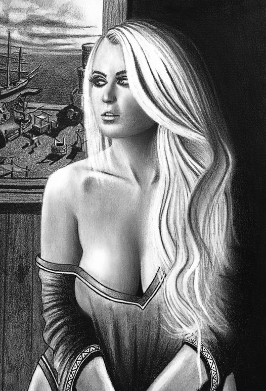 Though it has its flaws, I'm excited about this piece of art because it really gave me the confidence to move forward with drawing my own concept images. Until this drawing, I had only attempted maps and various types of buildings...the idea of drawing a person scared me to death! I must have watched 100 hours of YouTube before the first pencil ever came out of its case!